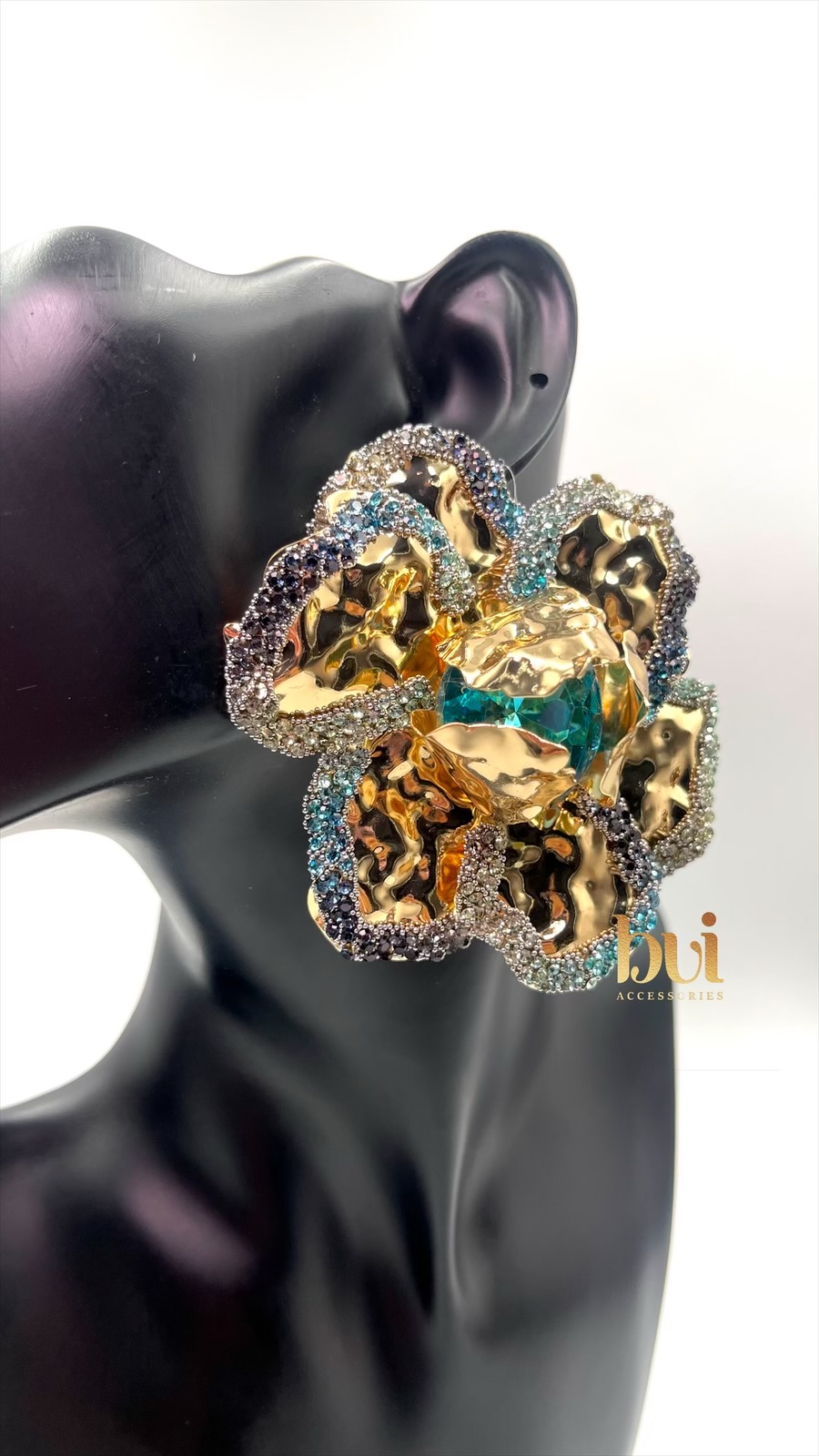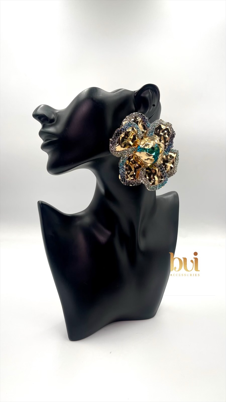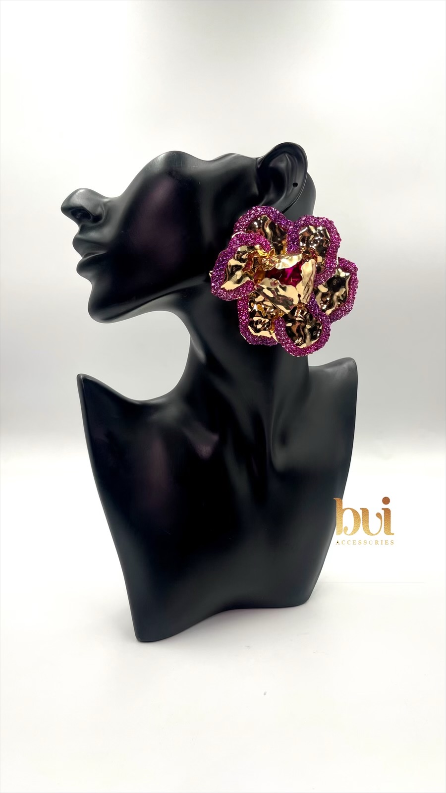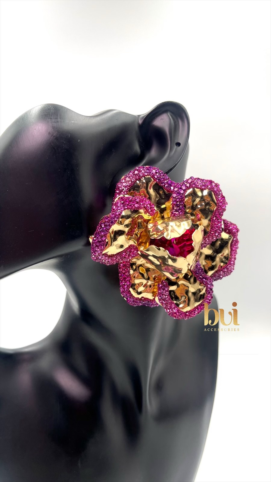 Command attention with our Bold Bloom Oversized Stud Earrings — a dramatic floral design that fuses deep magenta, gold accents, and intricate detailing. These stunning earrings are more than accessories — they’re wearable art. With a sculptural finish and crystal embellishments that catch the light beautifully, this pair is perfect for women who love their style loud, luxe, and unforgettable.