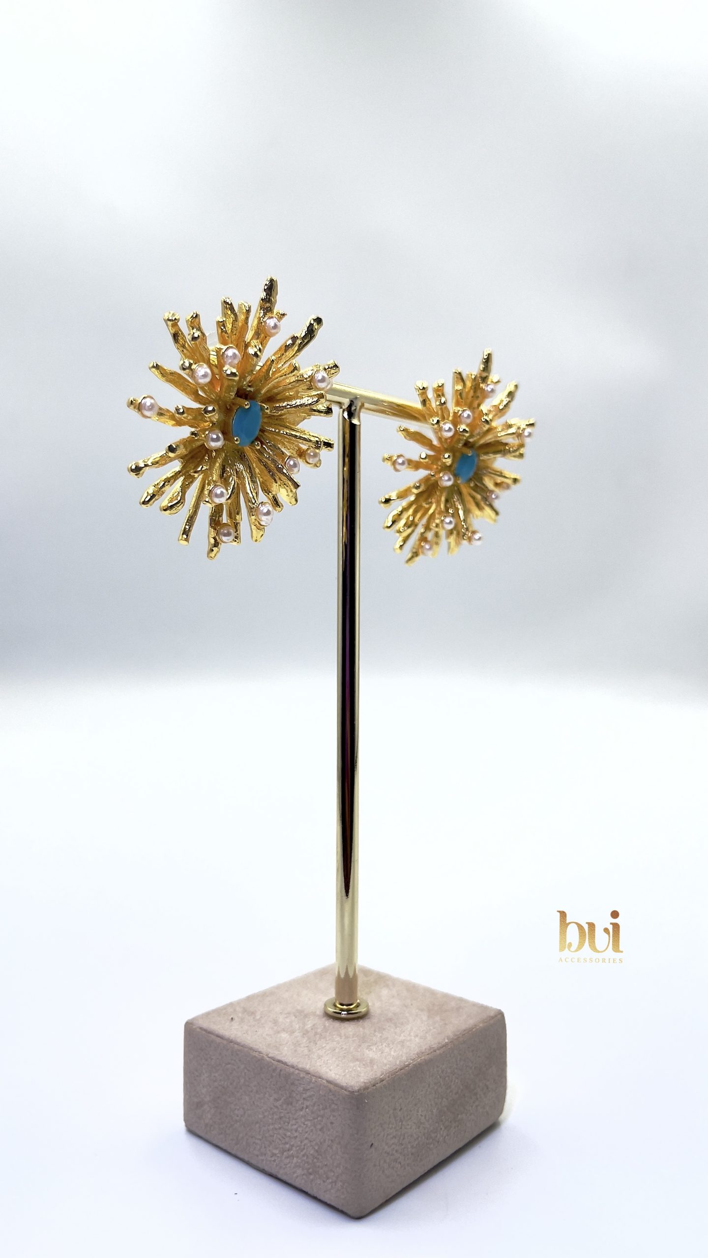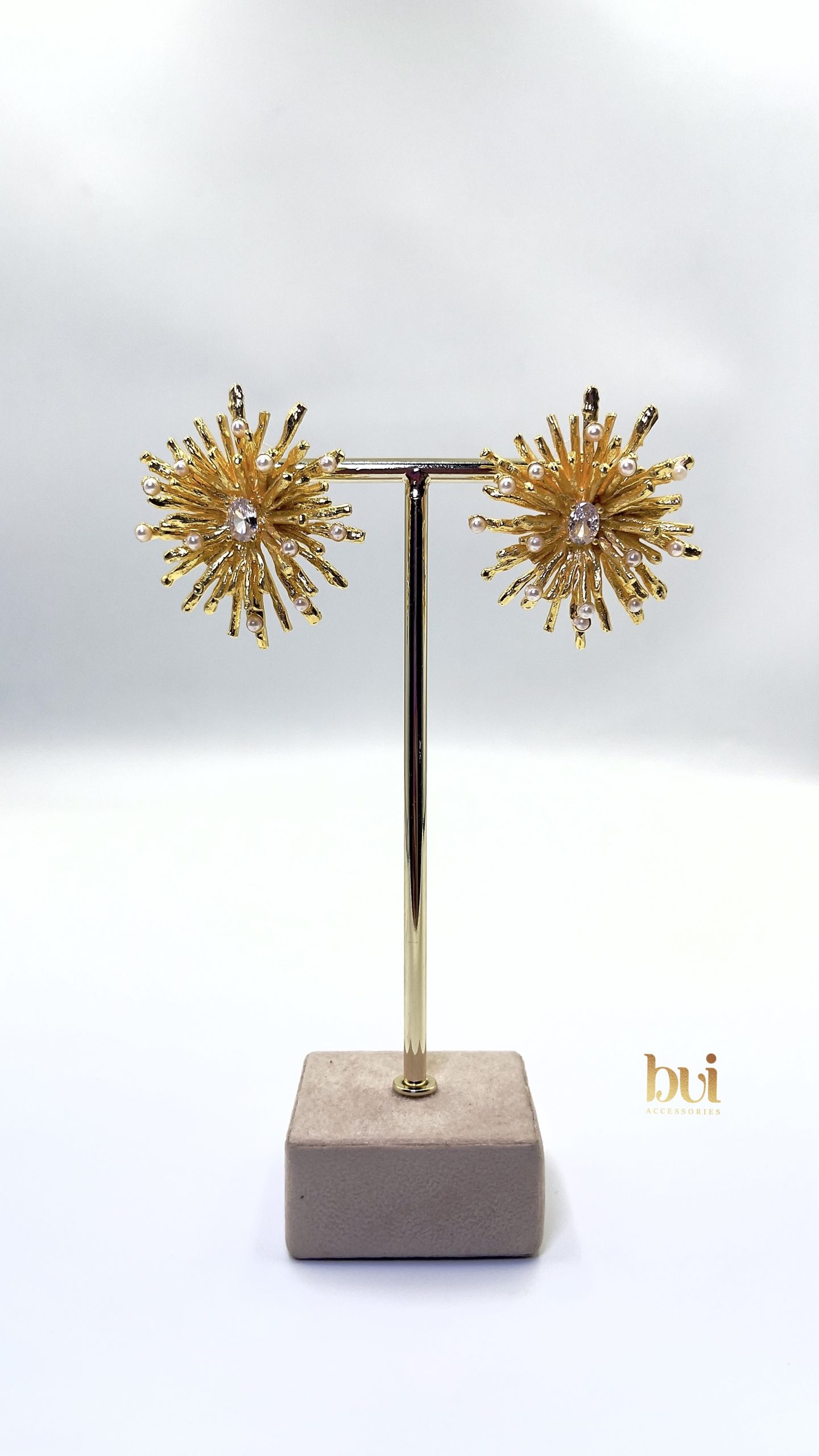 With radiant gold spikes and subtle pearl accents, this piece delivers elegance with just the right amount of drama.
