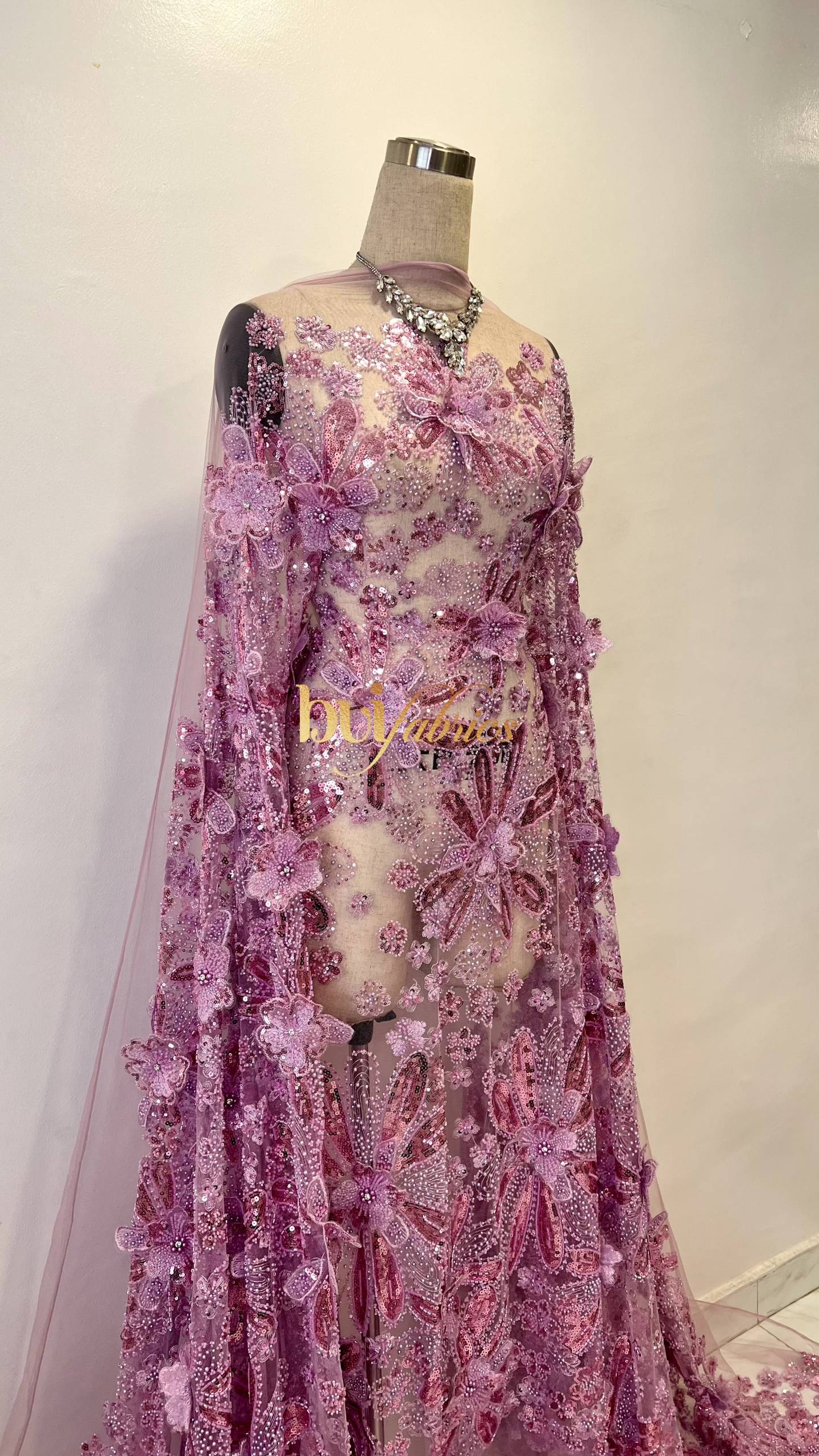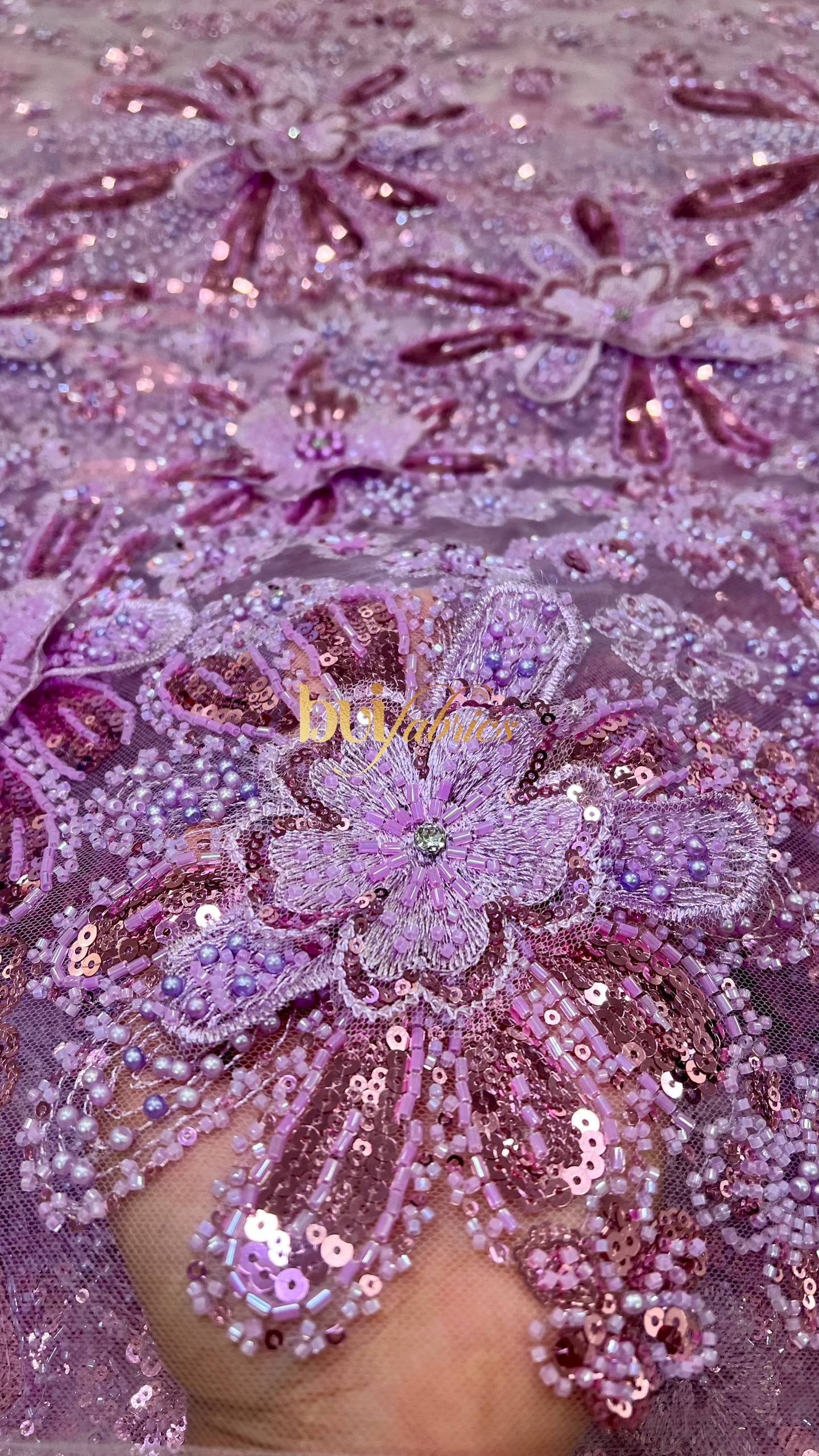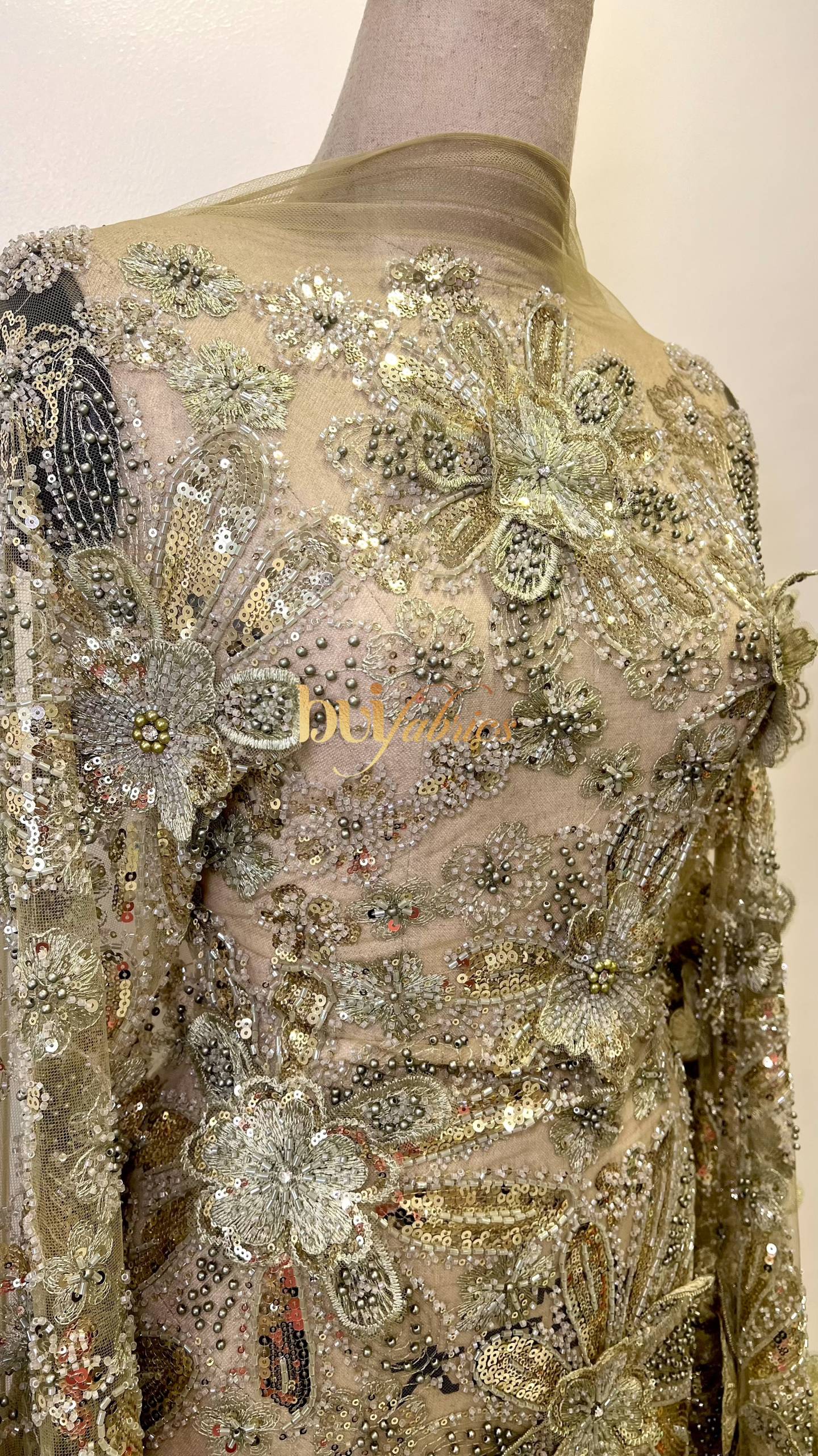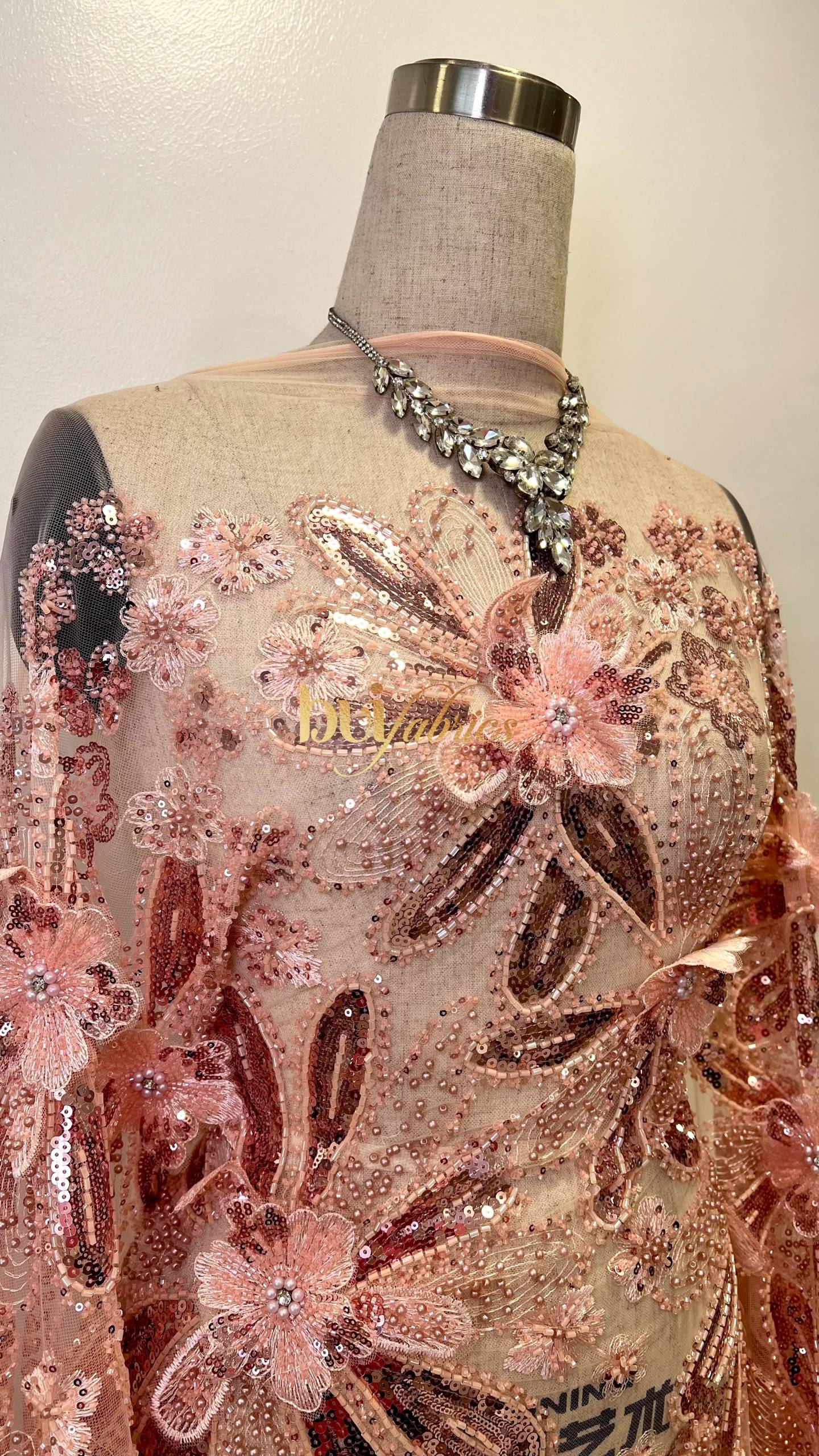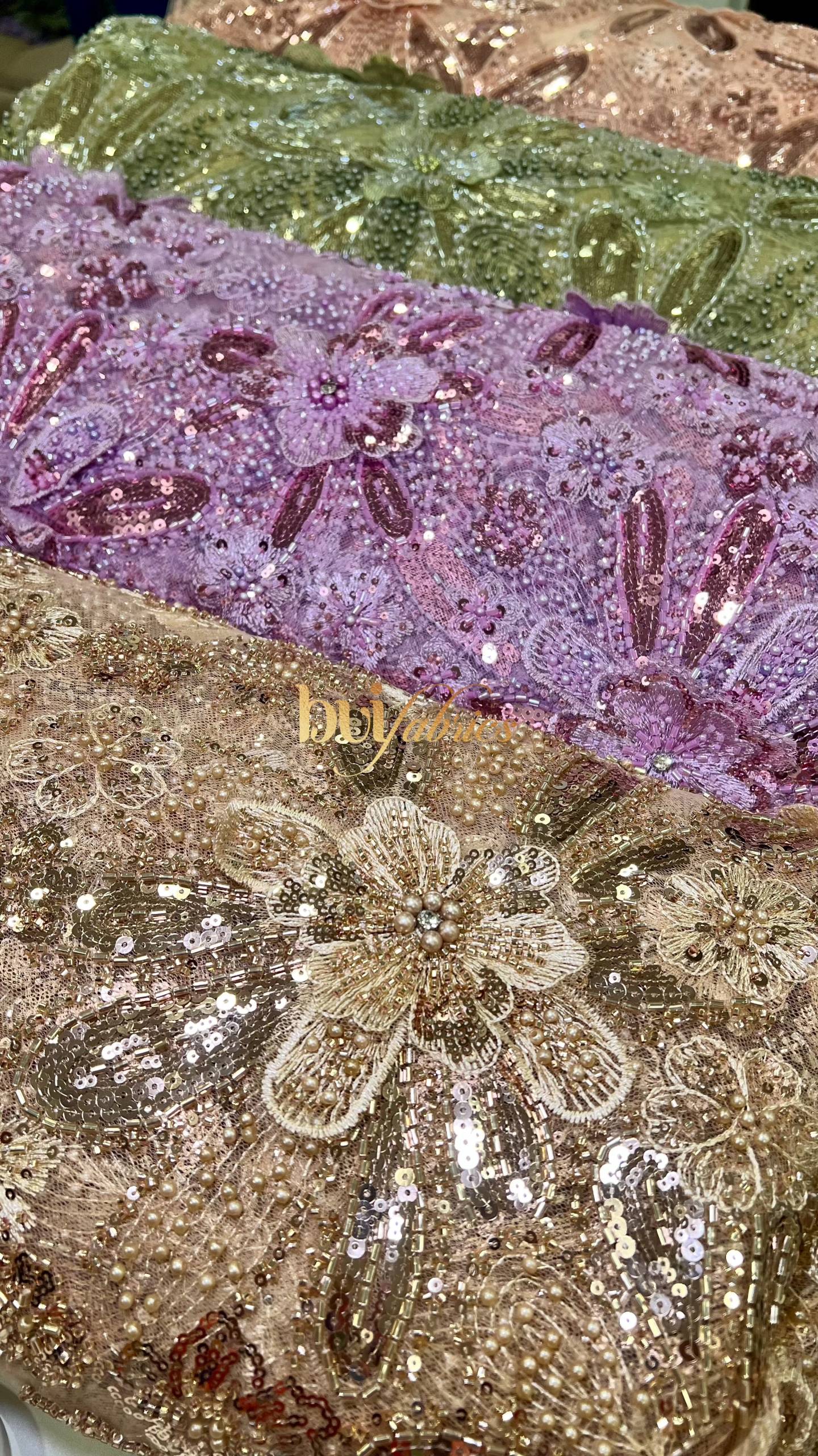 Every detail is intentional. The raised floral elements create depth and movement, while the dense beading catches the light beautifully, making this fabric perfect for luxury asoebi, engagement looks, mother-of-the-bride ensembles, and even bridal statement pieces. It is lush, dramatic, and truly regal—made for moments that demand presence.