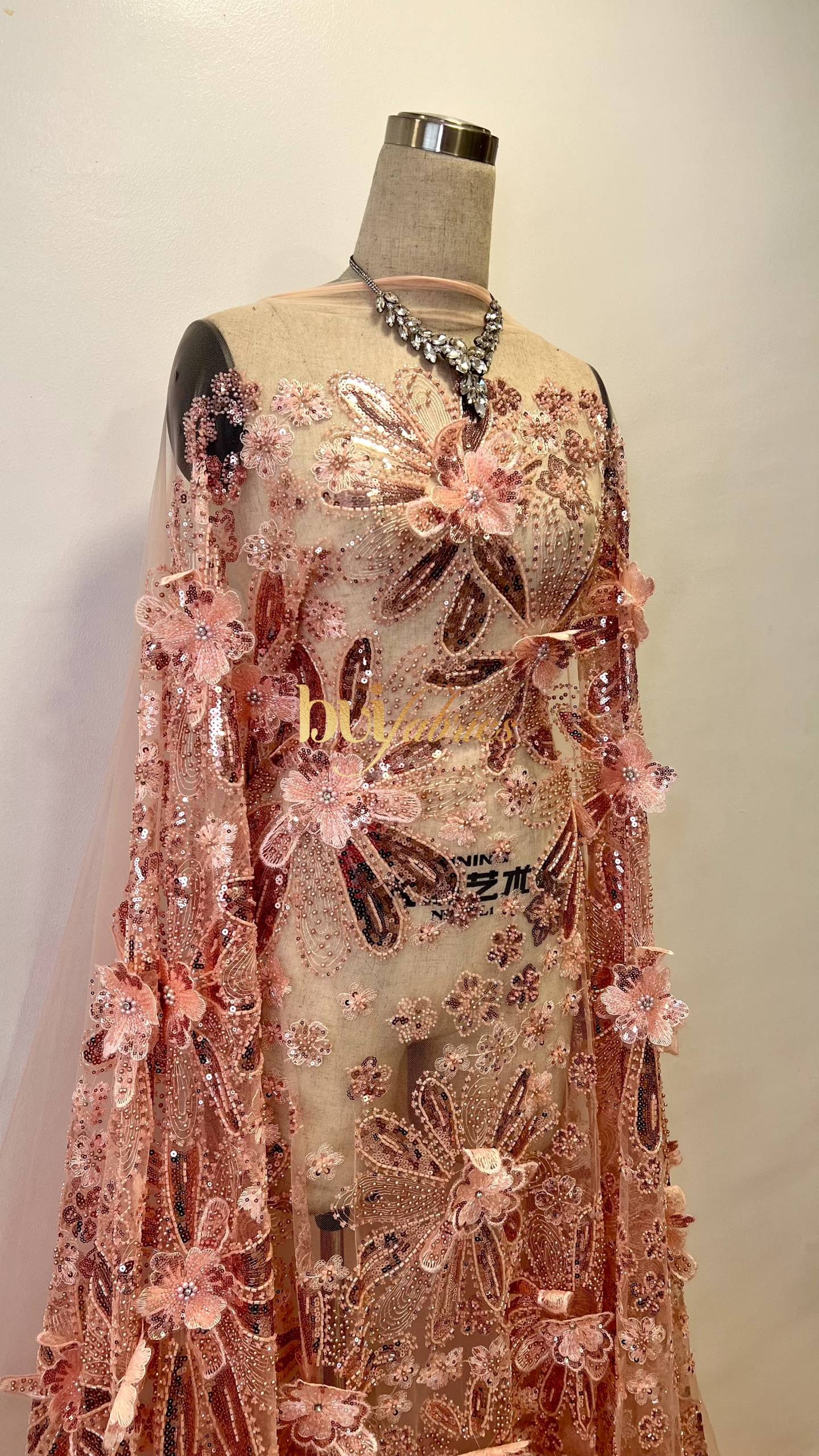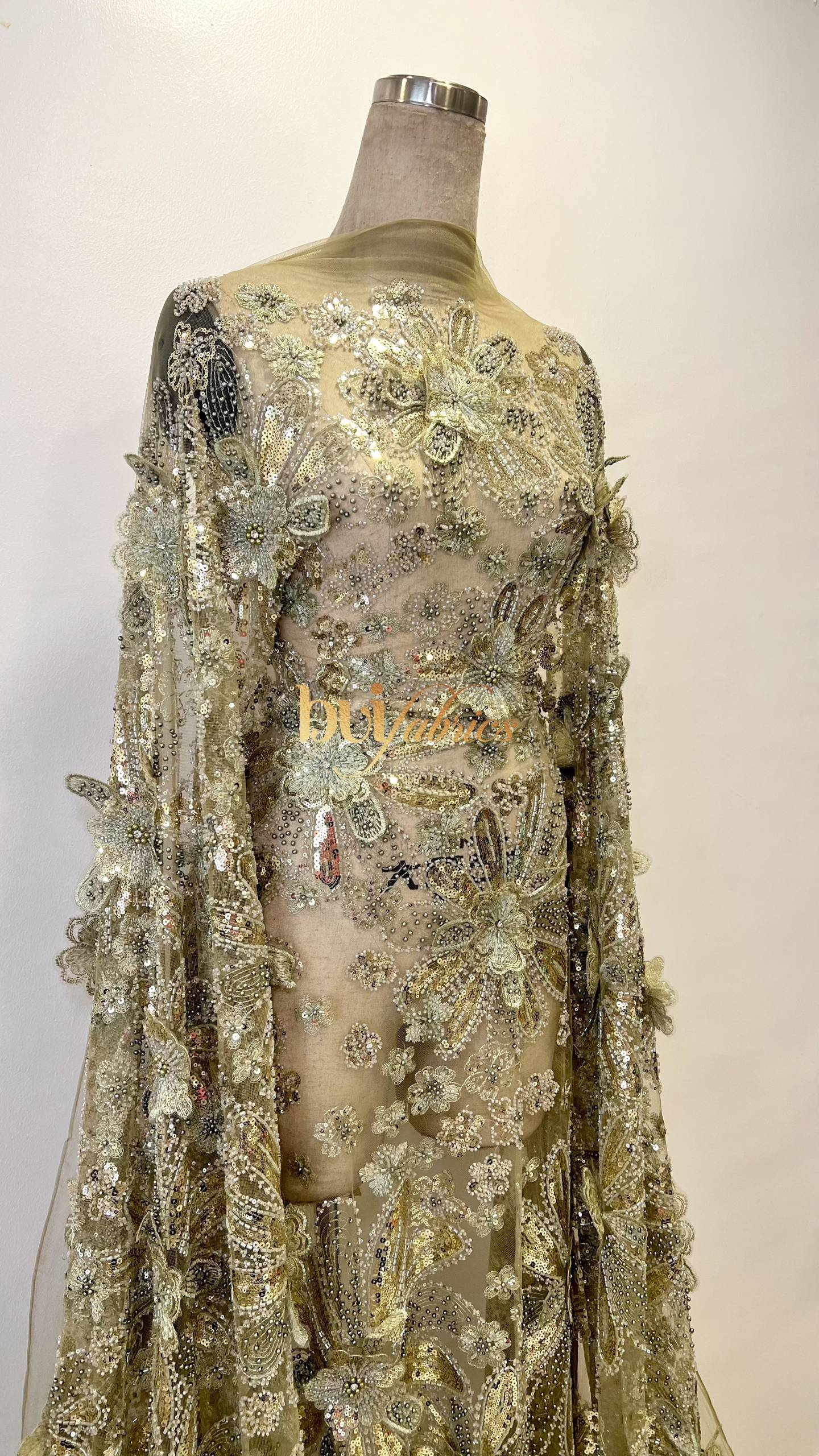 The Adesewa Floral 3D Beaded Tulle is the definition of luxury and opulence. Designed for women who want to make a powerful, unforgettable statement, this fabric features richly layered 3D floral appliqués, intricately embellished with shimmering beads and crystals on a soft tulle base.