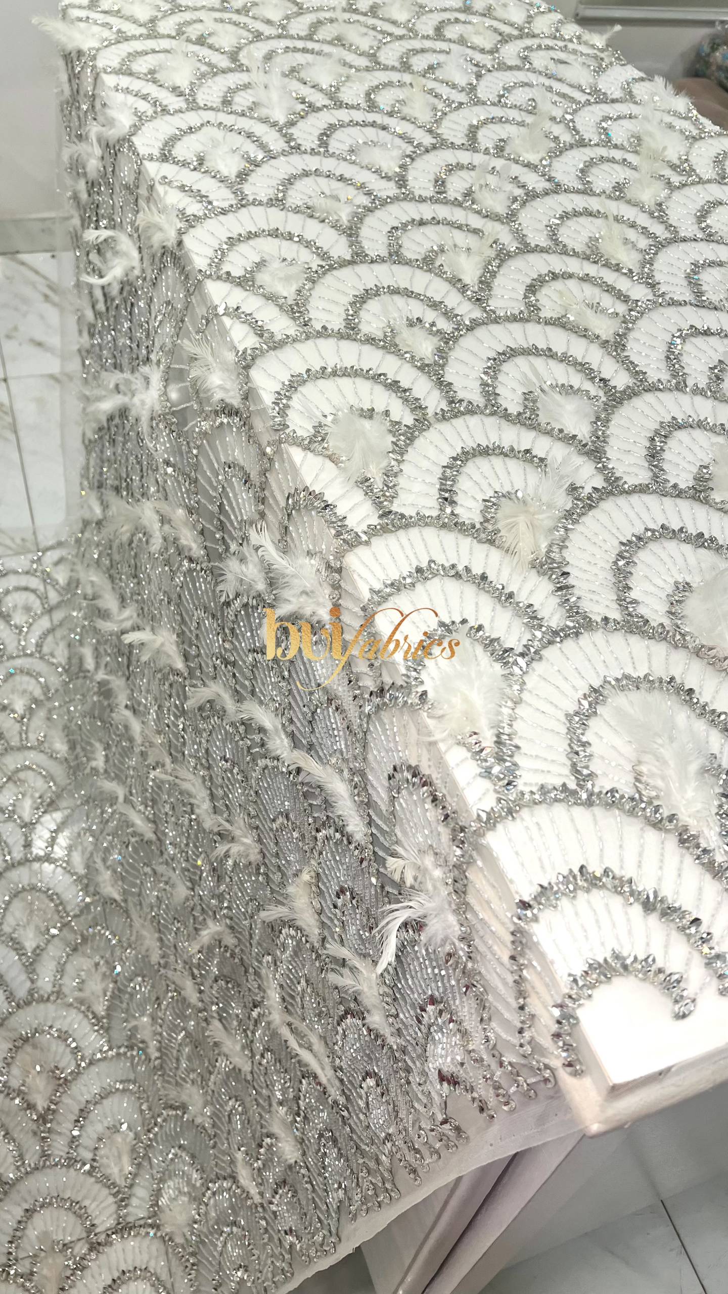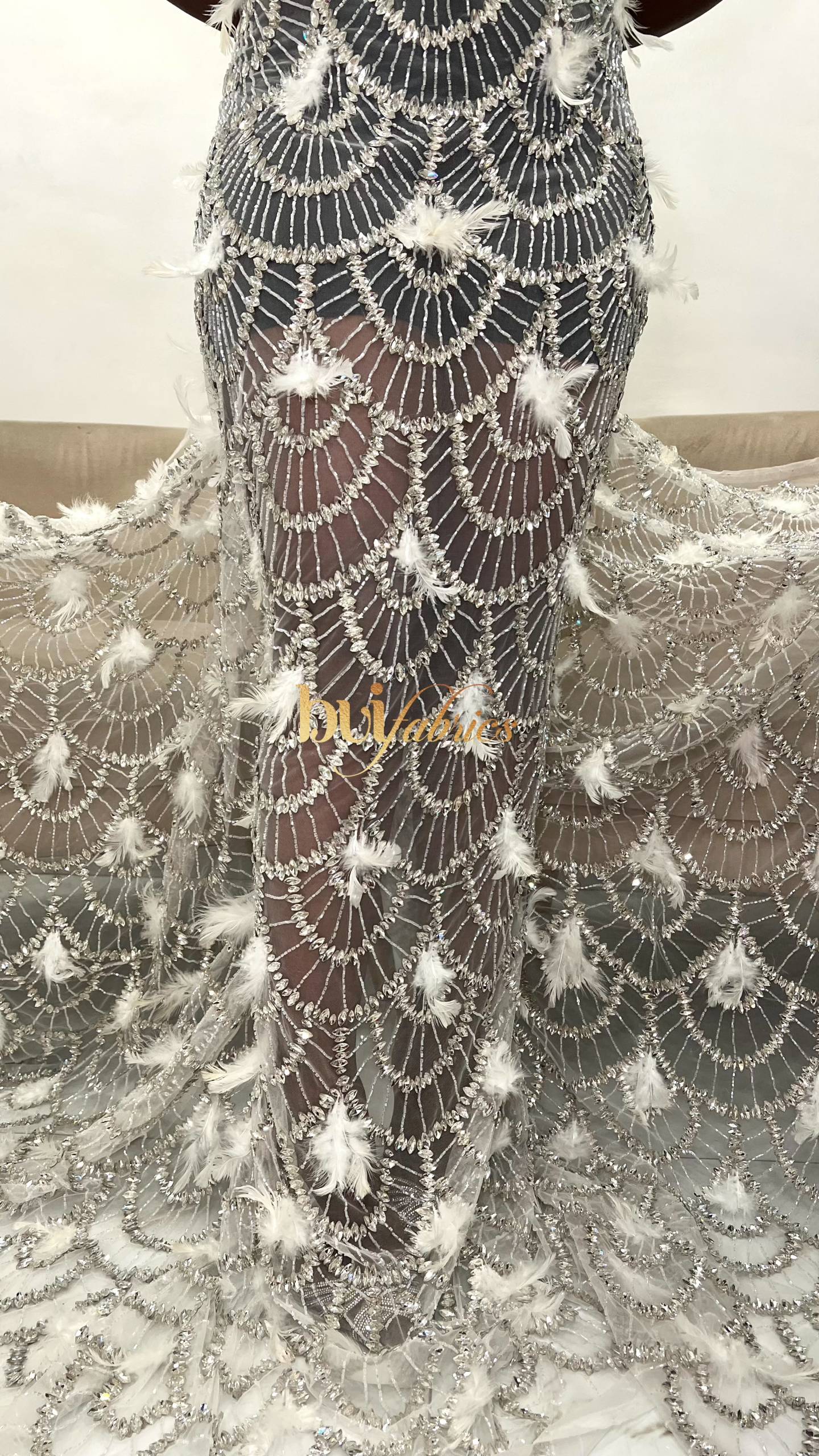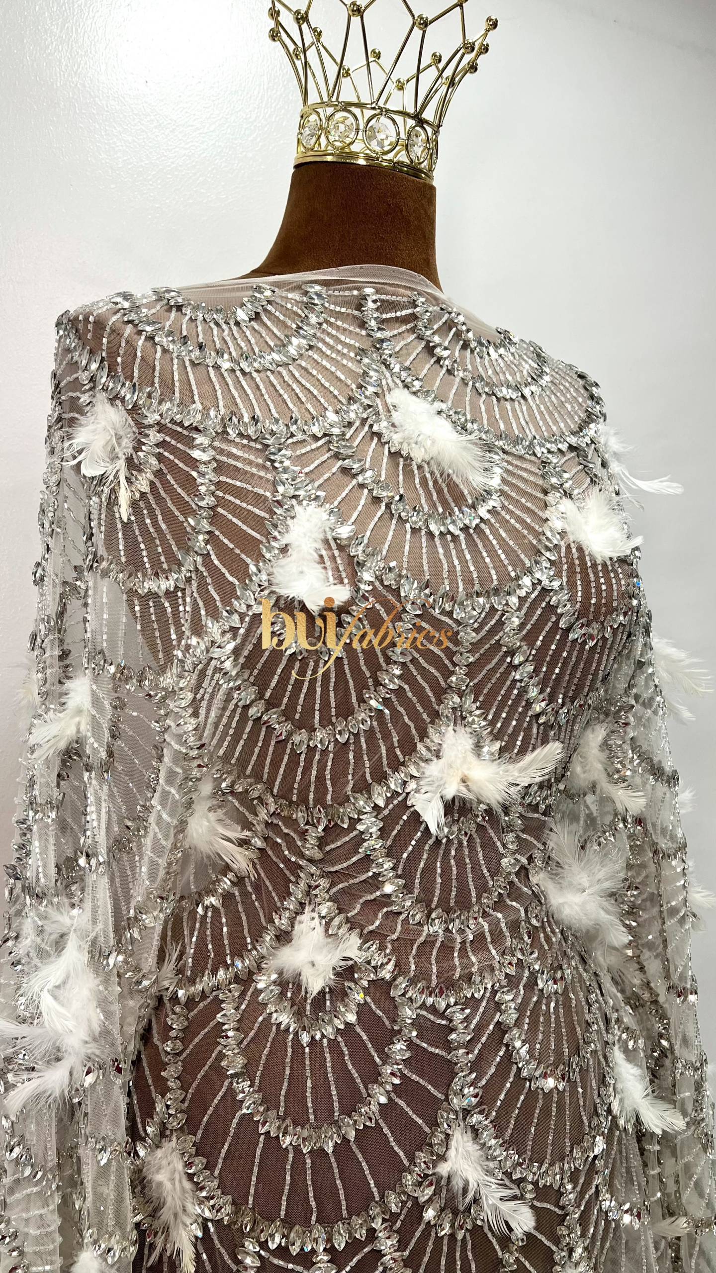 Designed for women who love bold elegance, the Achalogue Jewelled Feather Tulle embodies everything Buifabrics stands for — craftsmanship, confidence, and luxury made unforgettable.