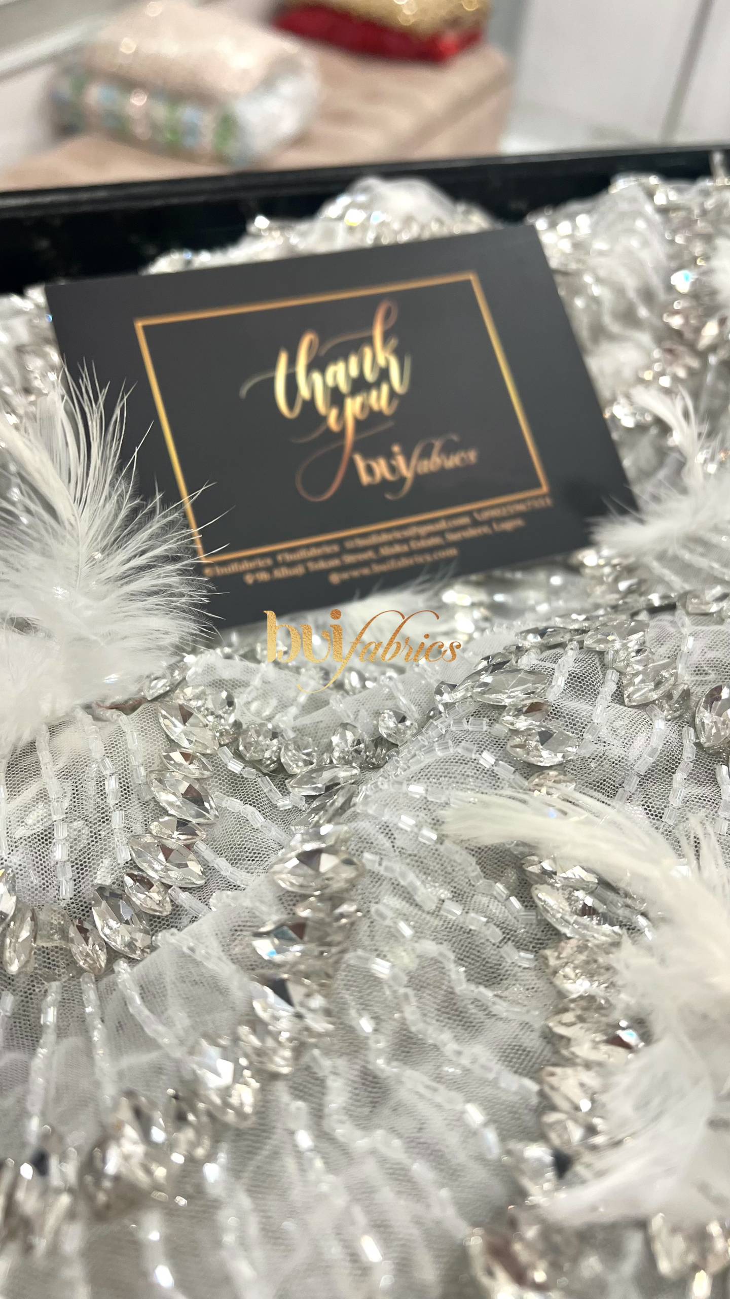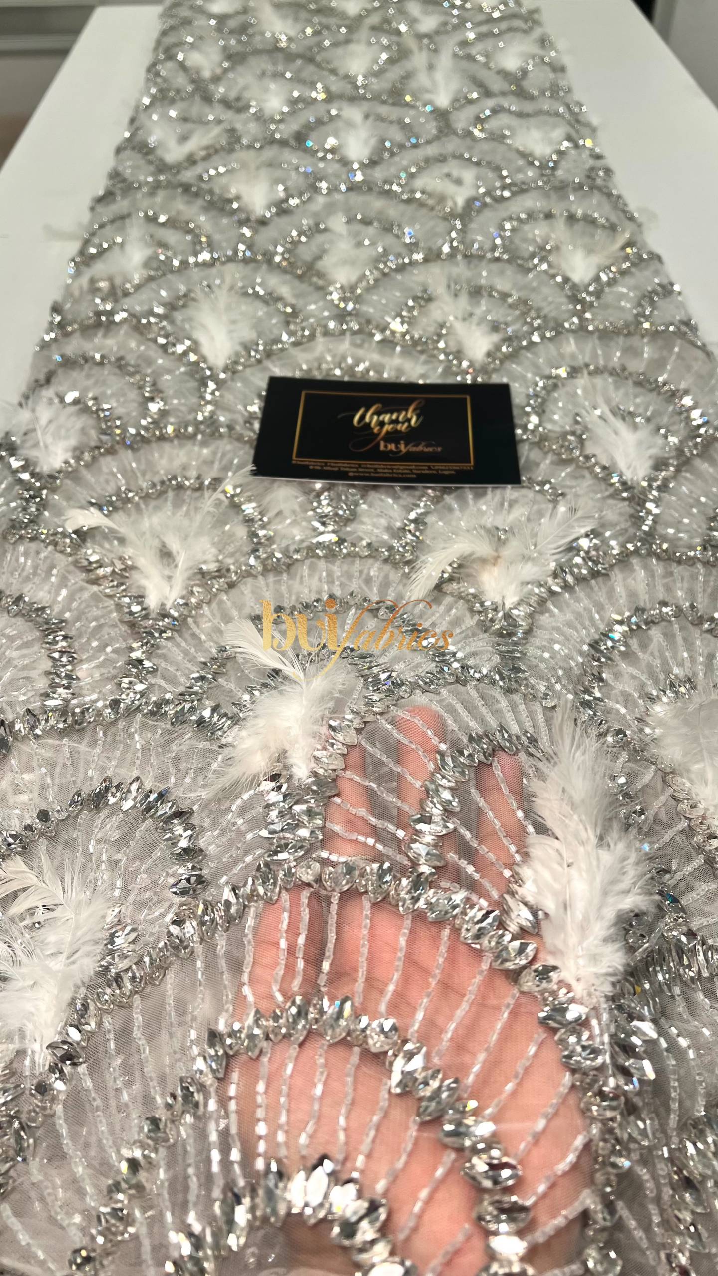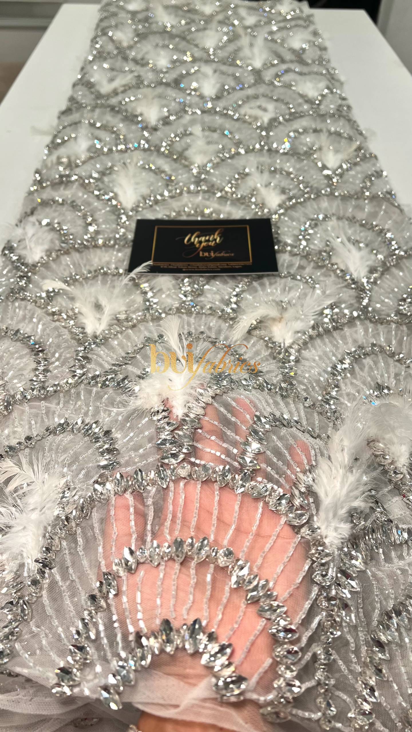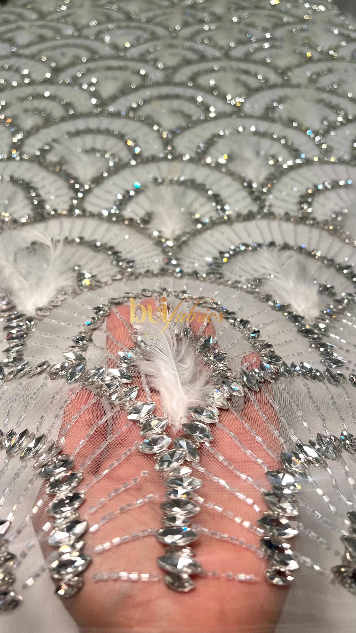 Designed for women who love bold elegance, the Achalogue Jewelled Feather Tulle embodies everything Buifabrics stands for — craftsmanship, confidence, and luxury made unforgettable.