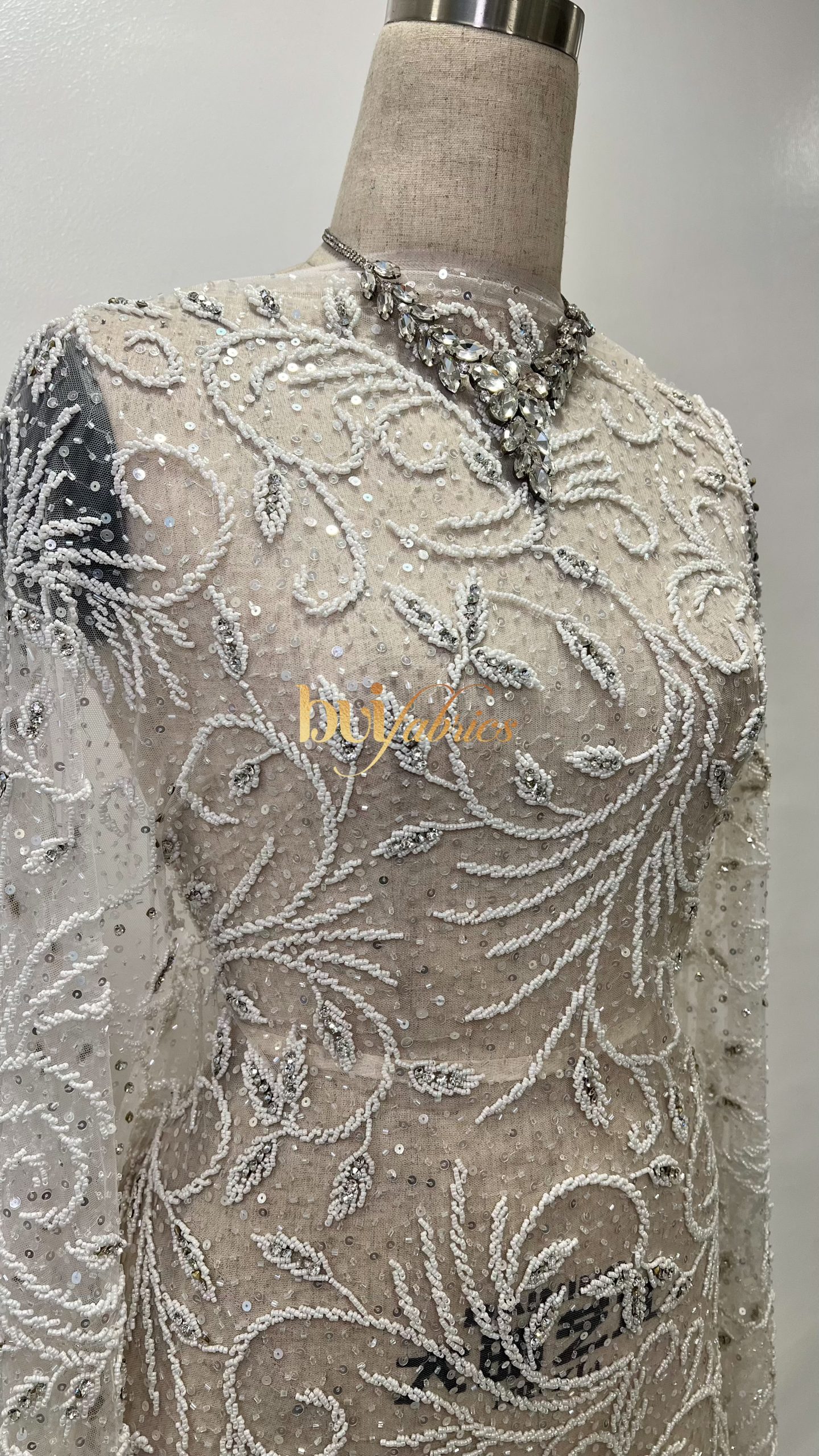 • Fabric Type: Luxury Pearl Beaded Tulle